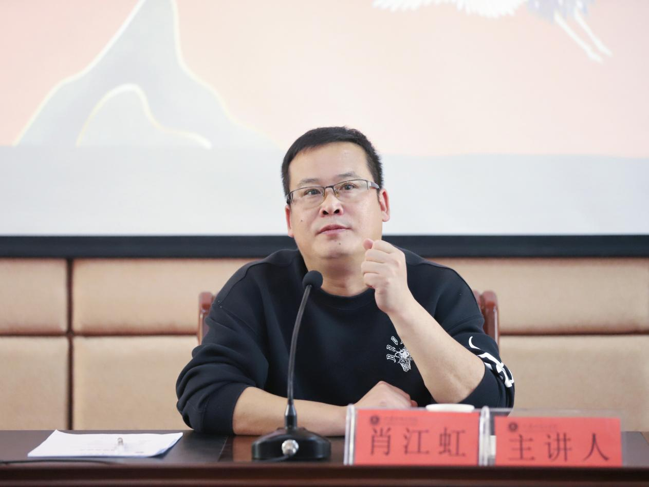 5月26日下午,著名作家肖江虹到bat365开展文学创作主题讲座。讲座在学校智学楼3楼朝阳讲堂进行,文学与新闻学院党委书记龙尚国主持。