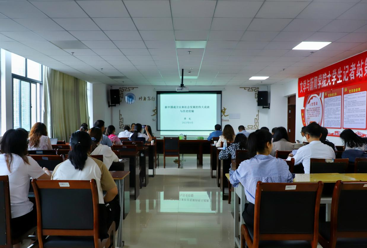 6月29日上午,学校党委委员、副校长费虹在奥学楼617作“新中国成立以来社会发展的伟大成就与历史经验”为题的党史学习教育专题思政课。文学与新闻学院党委、外国语学院党委所属党员,学生处、校团委、招生就业处3个党支部的党员代表到场聆听。(供稿/文学与新闻学院记者站 杨东梅 编辑校对/杨宏霞 梁佳俊 审核/龙尚国)