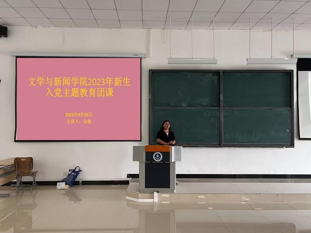 9月26日,文学与新闻学院学生党支部在勤学楼101教室开展新生入党教育主题团课,由学院党委组织委员、学生党支部书记金歆主讲。