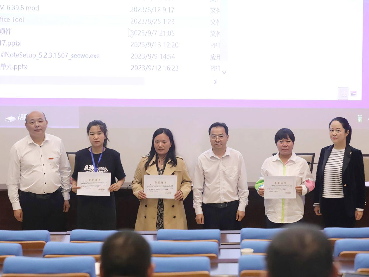 卫佳宣布优秀学员、优秀班主任获奖名单。张凌峰、许兴阳、卫佳为获奖代表颁奖。