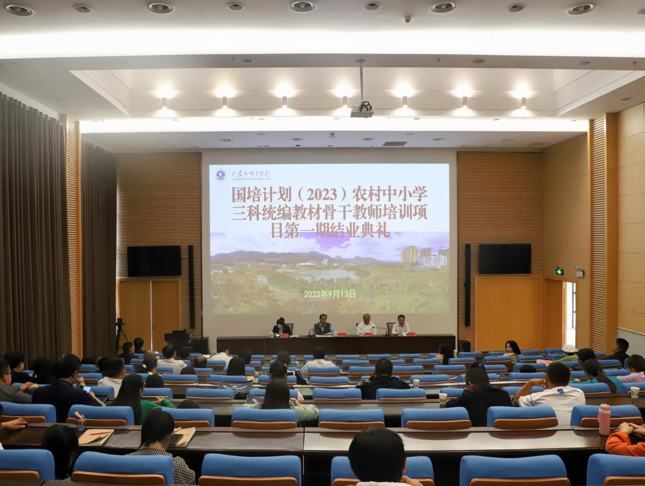 9月13日上午,在学校学术交流中心明道讲堂,贵州省“国培计划(2023)”农村中小学三科统编教材骨干教师培训项目(初中语文)第一期举行结业典礼。继续教育学院院长张凌峰,本期培训项目首席专家、文学与新闻学院院长许兴阳,本期培训项目负责人、文学与新闻学院汉语言文学系主任卫佳出席。文学与新闻学院党委书记龙尚国主持结业仪式。