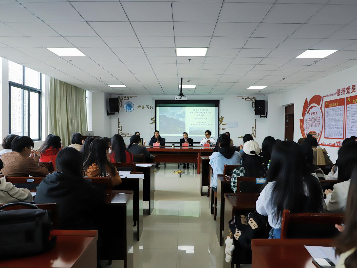 10月20日下午,文学与新闻学院在奥学楼617召开2021级新闻学专业见习动员大会。学院院长许兴阳教授,党委副书记杜云副教授,新闻学专业副系主任吴向华、教师王琳出席。院长助理、新闻学系主任余索主持会议。