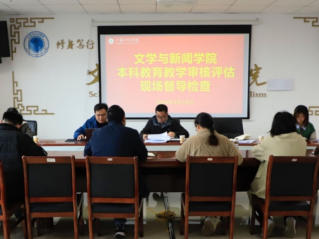3月18日下午,bat365在线中国登录入口教学质量监控与评估处副处长杨再超率队到文学与新闻学院奥学楼617进行本科教育教学审核评估现场督导。学院党委副书记杜云、学院各科室负责人接受了督导检查。