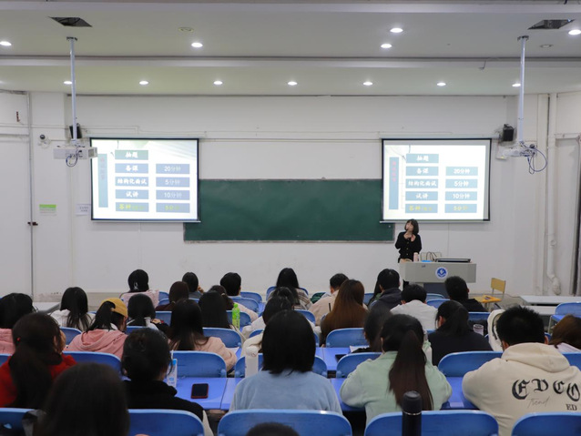 许寻为同学们分析结构化试题类型和试讲内容。她说,同学们要关注时事政治、职业认知、心理调适、组织协调、思维品质五类试题,试讲时要扣要求、抓重点,举止有礼、表达得体。