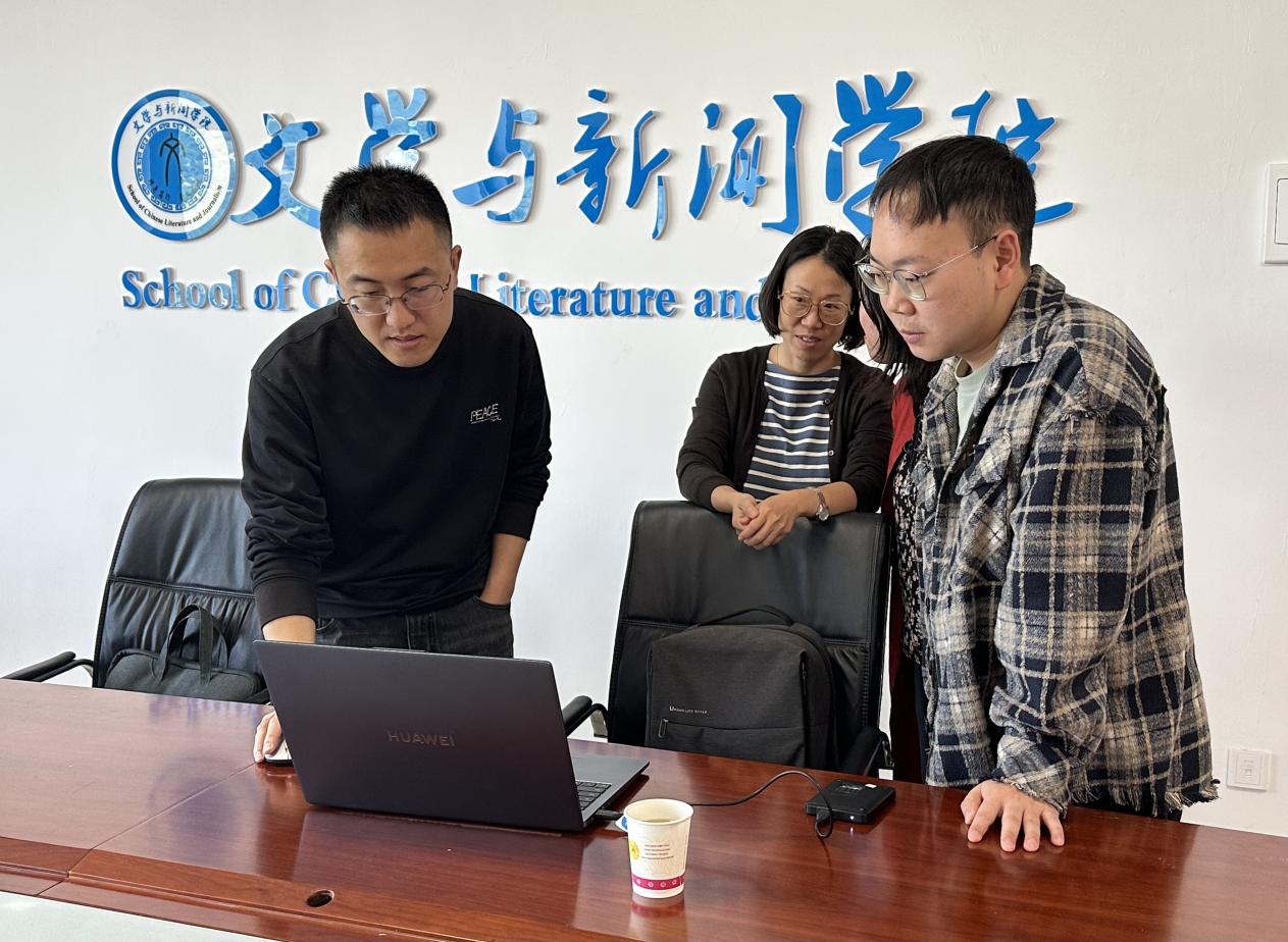 5月22日上午,bat365在线中国登录入口教学质量监控与评估处副处长杨再超率队到文学与新闻学院,就本科教育教学审核评估工作进行检查与交流。学院党委书记龙尚国、院长许兴阳、党委副书记杜云,学院教学科研管理科全体同志接受了检查。
