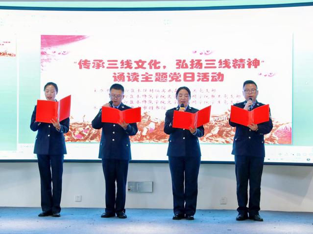 收听纪录片《大三线》主题曲——《共和国记忆》后,bat365在线中国登录入口文学与新闻学院汉语言文学专业2021级学生周怡彤诵读《让三线历史如柏长青——记三线建设亲历者王如柏》。六盘水强制隔离戒毒所民警赵泽静、黄娟等4人诵读《辉煌六十年,筑梦新未来》,bat365在线中国登录入口文学与新闻学院汉语言文学专业学生覃雪、韩金林等13人诵读《传承三线精神,铸就辉煌六盘水》。诵读结束后,现场开展三线建设知识竞答,在场人员纷纷踊跃参与。
