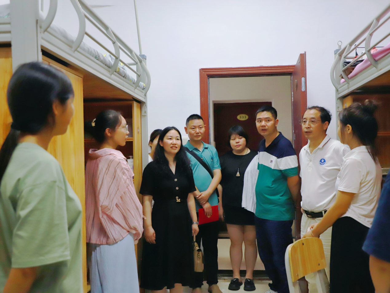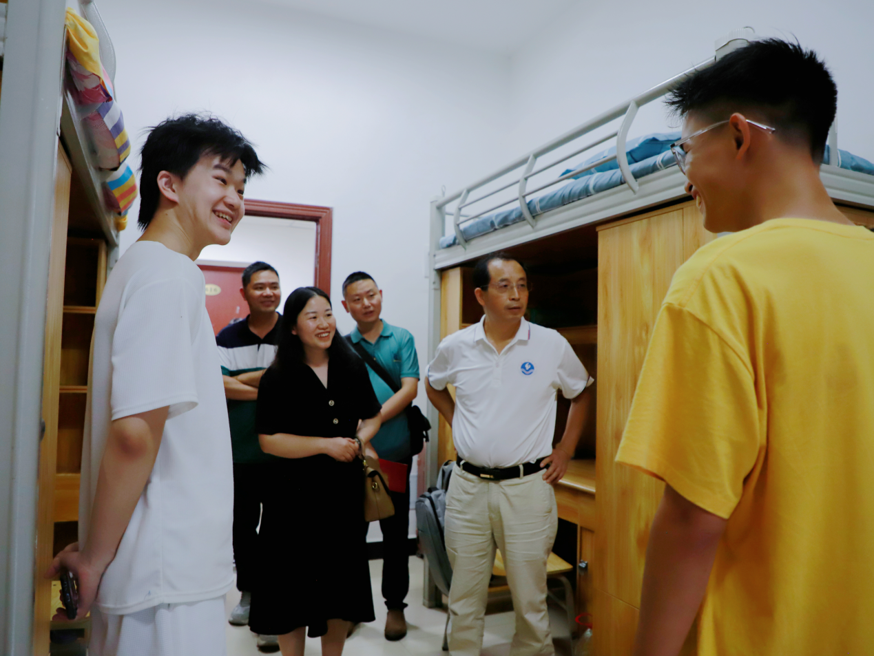 8月27日晚,文学与新闻学院党委书记龙尚国,党委副书记杜云,副院长支媛,学生科(团委)负责人李娆宇,辅导员何亮、杨杰走进新生宿舍,慰问入校新生。