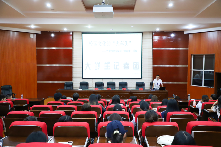学校党委宣传部副部长陈挺为同学们简要介绍校大学生记者团。他说,大学生记者团是一个很好的实践平台,鼓励大家学好理论课的同时注重培养实践能力,期待同学们加入大学生记者团。