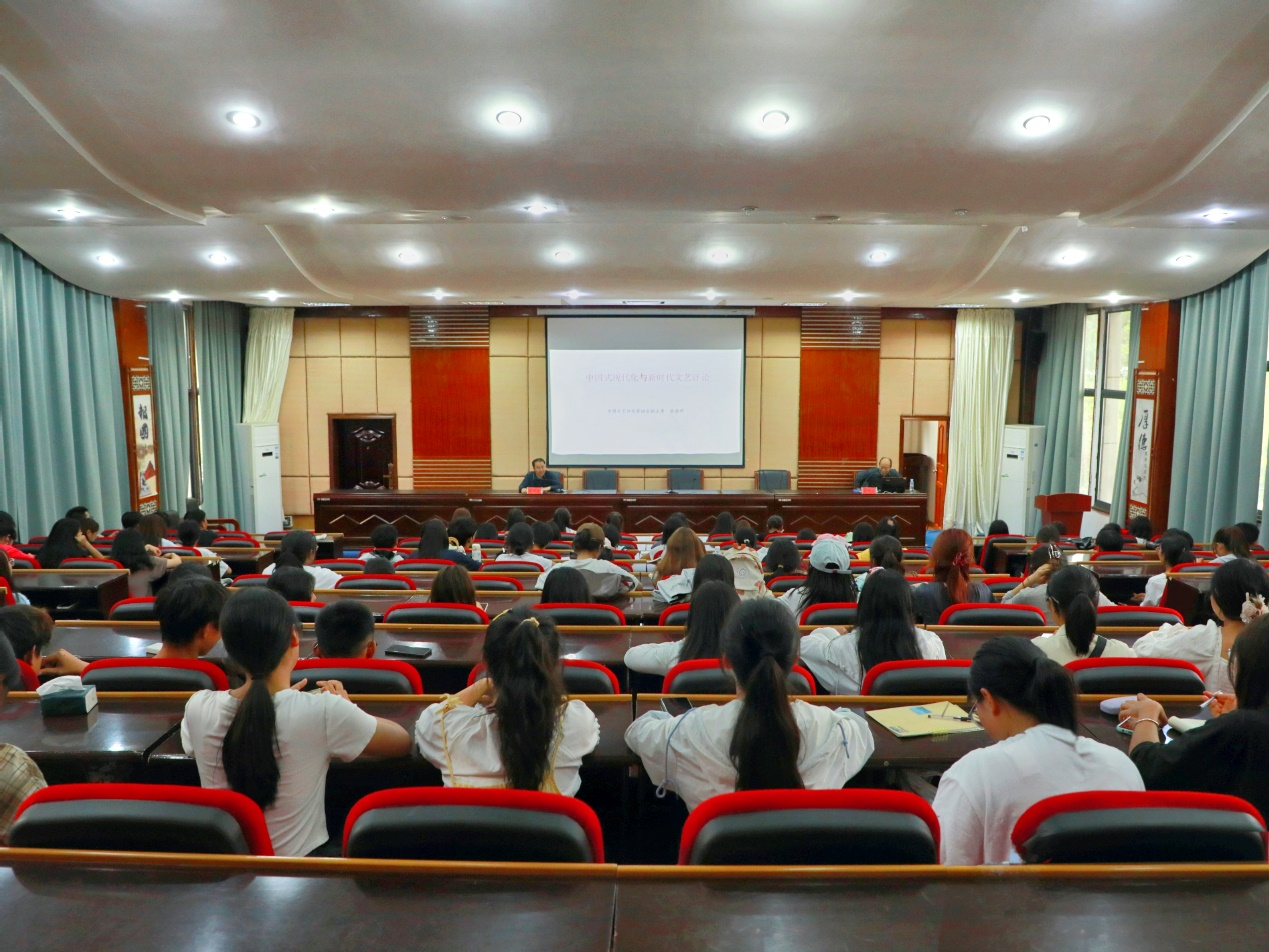 9月20日下午,由中国文艺评论家协会副主席张德祥主讲的汉语言文学专业阳光系列讲座——“中国式现代化与新时代文艺评论”在智学楼朝阳讲堂开讲。讲座由文学与新闻学院院长许兴阳主持。