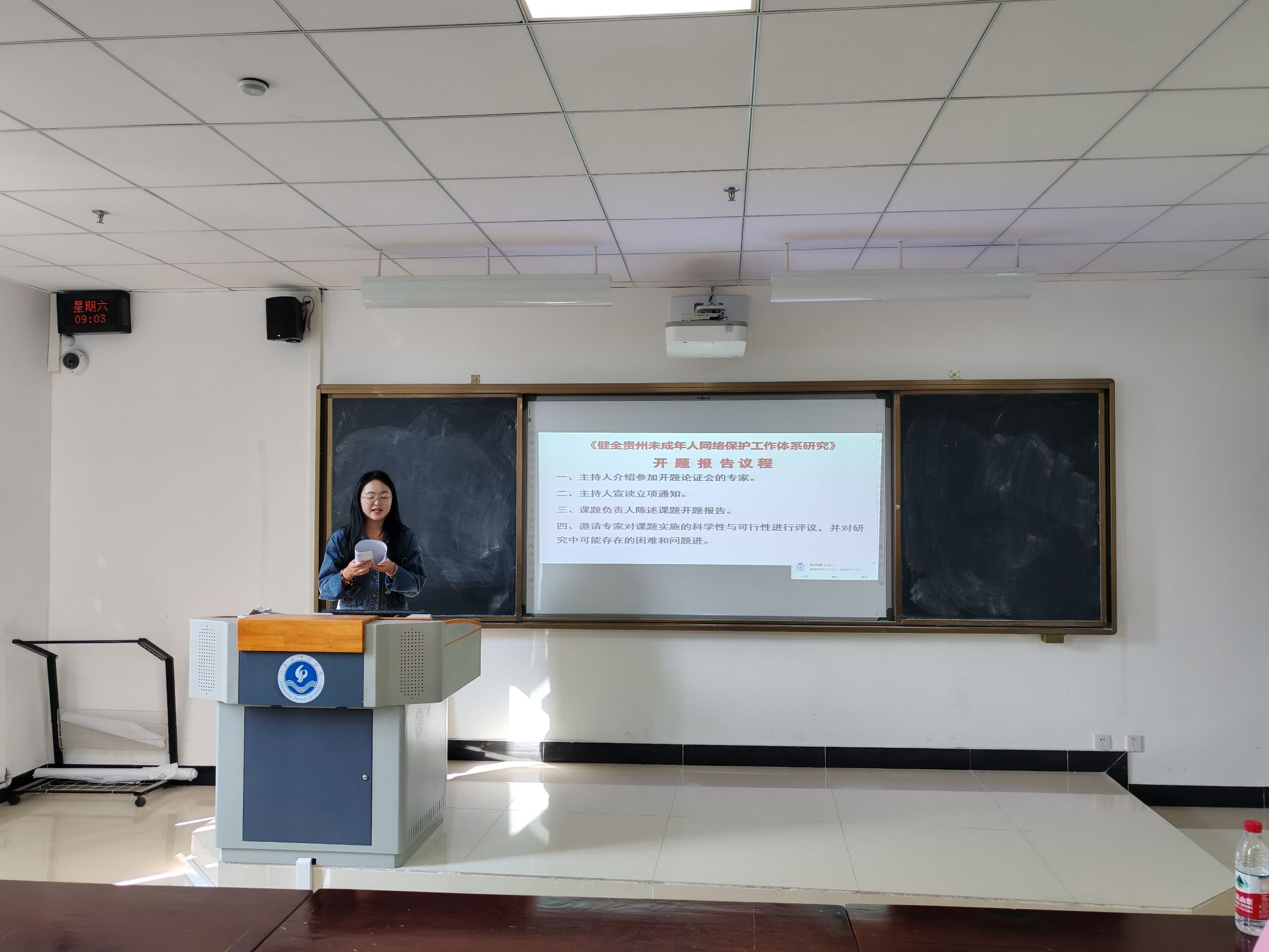 开题报告会上,主持人介绍参加论辩会的专家,宣读立项通知,就该课题的提出及立项作介绍。课题主持人彭永胜作开题报告,主要从课题组的成员、课题提出的背景、课题研究的意义、课题研究的内容、课题研究的重点难点、课题研究的思路、人员分工等方面作了汇报。彭永胜老师在报告中提出,贵州作为西南地区的重要省份,其未成年人网络保护工作体系的健全与完善对于保障未成年人合法权益、促进健康成长具有重要意义。研究将进一步规划实施路径与保障措施,包括制定详细的工作计划和时间表,明确各项任务的责任主体和完成时限;设计相应的保障措施,如资金保障、人员保障、制度保障等,以确保策略建议的顺利实施和持续推进。