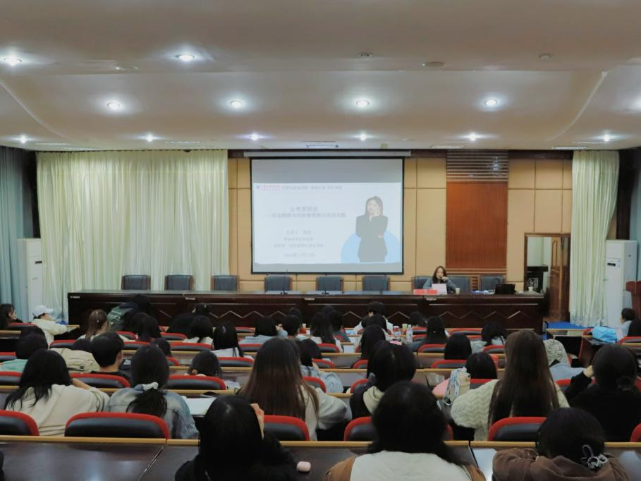 周风以《彷徨》《呐喊》《伤逝》《朝花夕拾》大学四部曲为话题切入,告诉同学们大学职业规划的重要性。通过对高校毕业生人数、专业择业关键因素等数据分析,她说,在大学毕业生就业困难的现状下,公务员属于国家行政编制,工资福利好,具有各种津贴、住房和医疗补贴、目标奖、年终奖和子女教育优待等好处,是就业的优良选择。