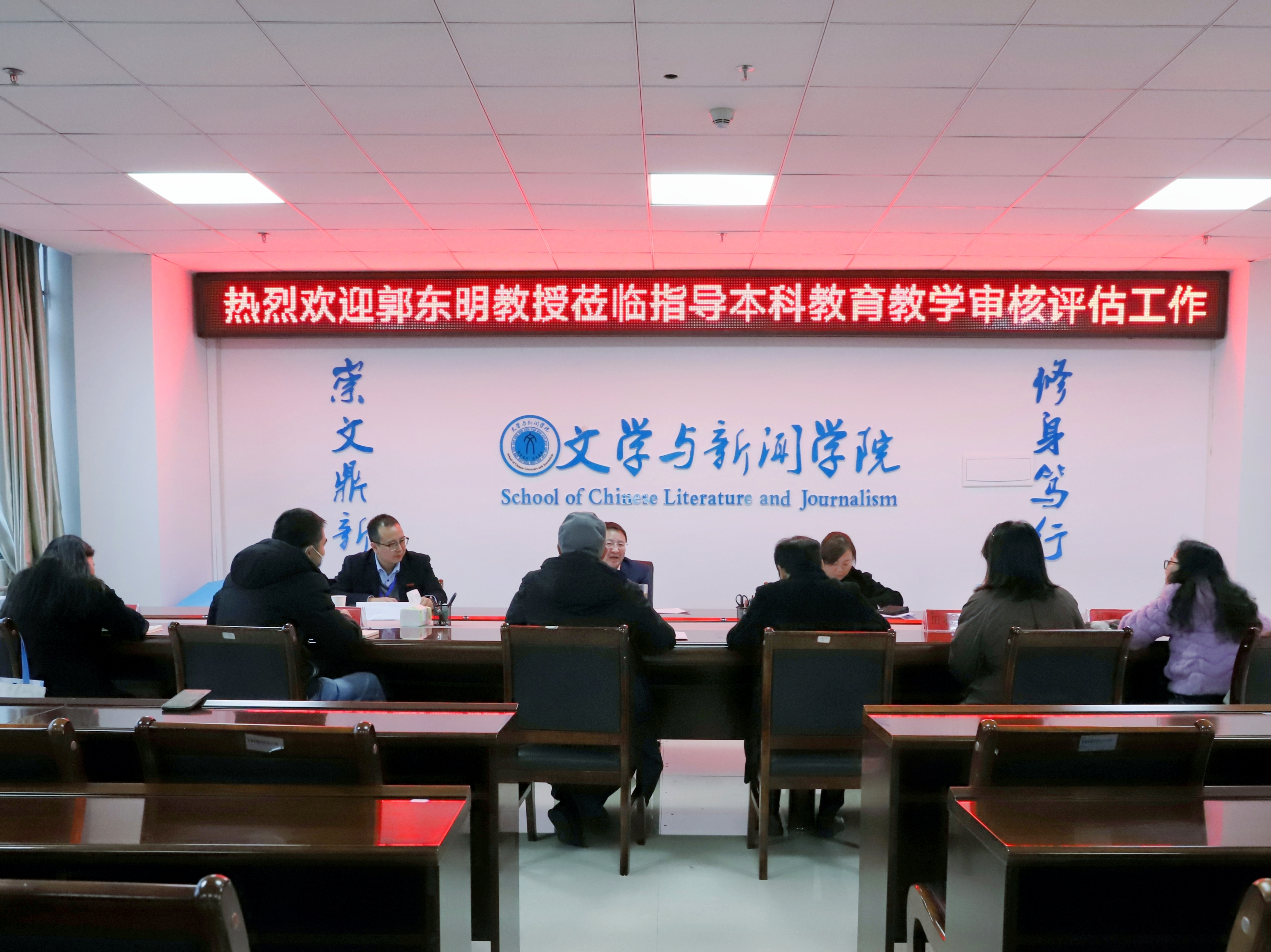 11月22日下午,本科教育审核评估专家组到我院开展访谈交流会,中国矿业大学郭东明教授光临指导,文学与新闻学院党委书记龙尚国、院长许兴阳教授、党委副书记杜云副教授、新闻学系主任余索副教授、秘书学系主任田利红副教授、专业负责人吴彩虹教授参加会议。