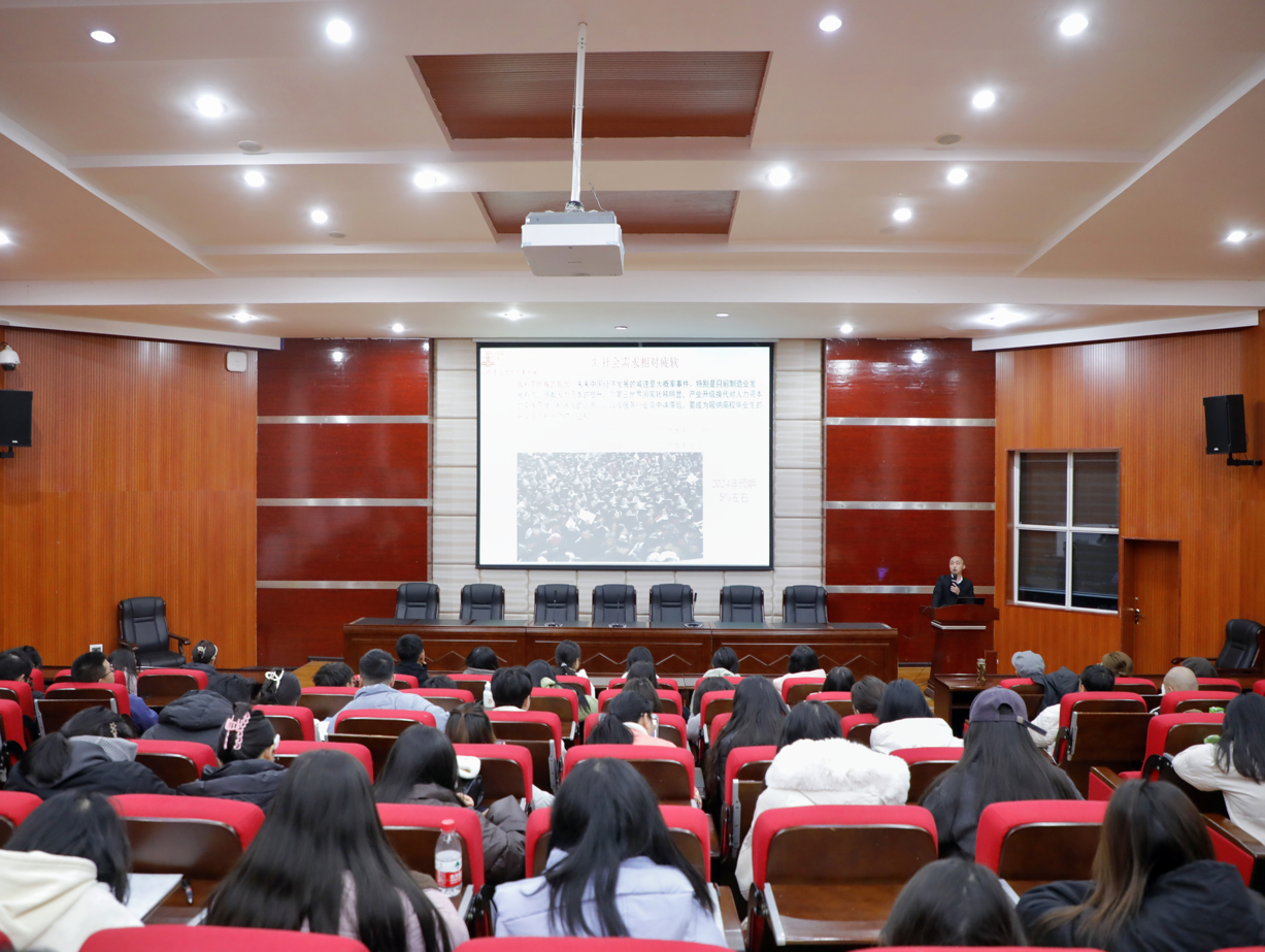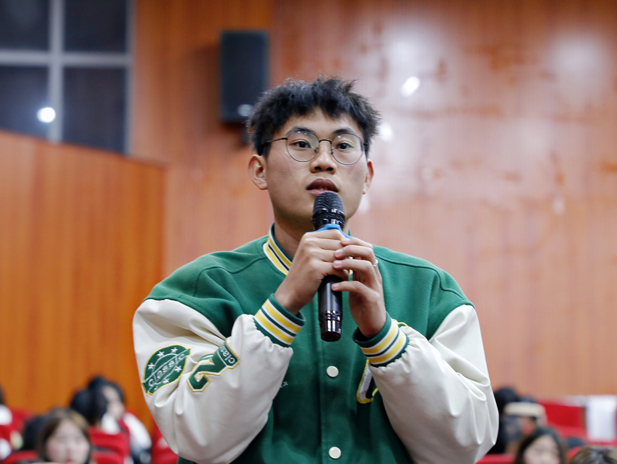 唐剑飞向同学们讲解面试的流程、题型与着装。就面试的五种题型分别提出了解决办法,向同学们说明了面试着装的具体要求。在互动环节,唐剑飞耐心解答和指导同学们关心的问题。此外,他寄语同学们工作有本领、岗位有担当、待人有责任、生命有激情、未来有梦想。