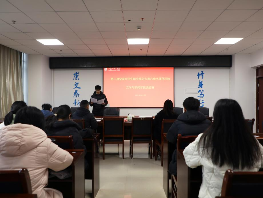 12月3日下午,文学与新闻学院在奥学楼617举行第二届全国大学生职业规划大赛院级选拔赛。学院党委副书记杜云,辅导员何亮、王雪雪、杨杰担任评委。