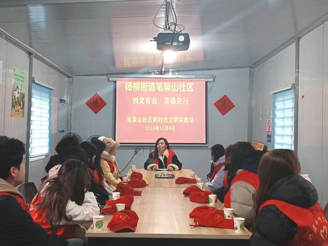12月8日,文学与新闻学院组织志愿者参在杨柳街道笔架山社区新时代文明实践站开展的“移风易俗”宣传活动,笔架山社区工作人员赵晓茜担任宣讲员。
