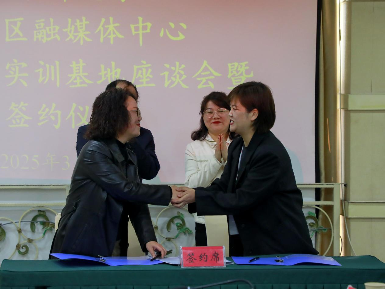 李娟指出,实习实训基地的建设是推动媒体深度融合发展的重要举措,能够有效解决人才和技术短缺的问题,为基层主流宣传舆论阵地的转型升级提供战略支持。她建议双方建立常态化的对接机制、精细化的培养方案以及双向评价体系,以此打造校地合作的新样板,实现产学研的紧密结合,促进双方在媒体融合领域的共同发展。她期望双方能够以实习实训基地挂牌为契机,共同开发理论专栏、思政教育精品课程,以及微视频、微短剧等创新形式,共同打造党的创新理论宣传宣讲的特色品牌,更好地服务于校地高质量发展的大局。