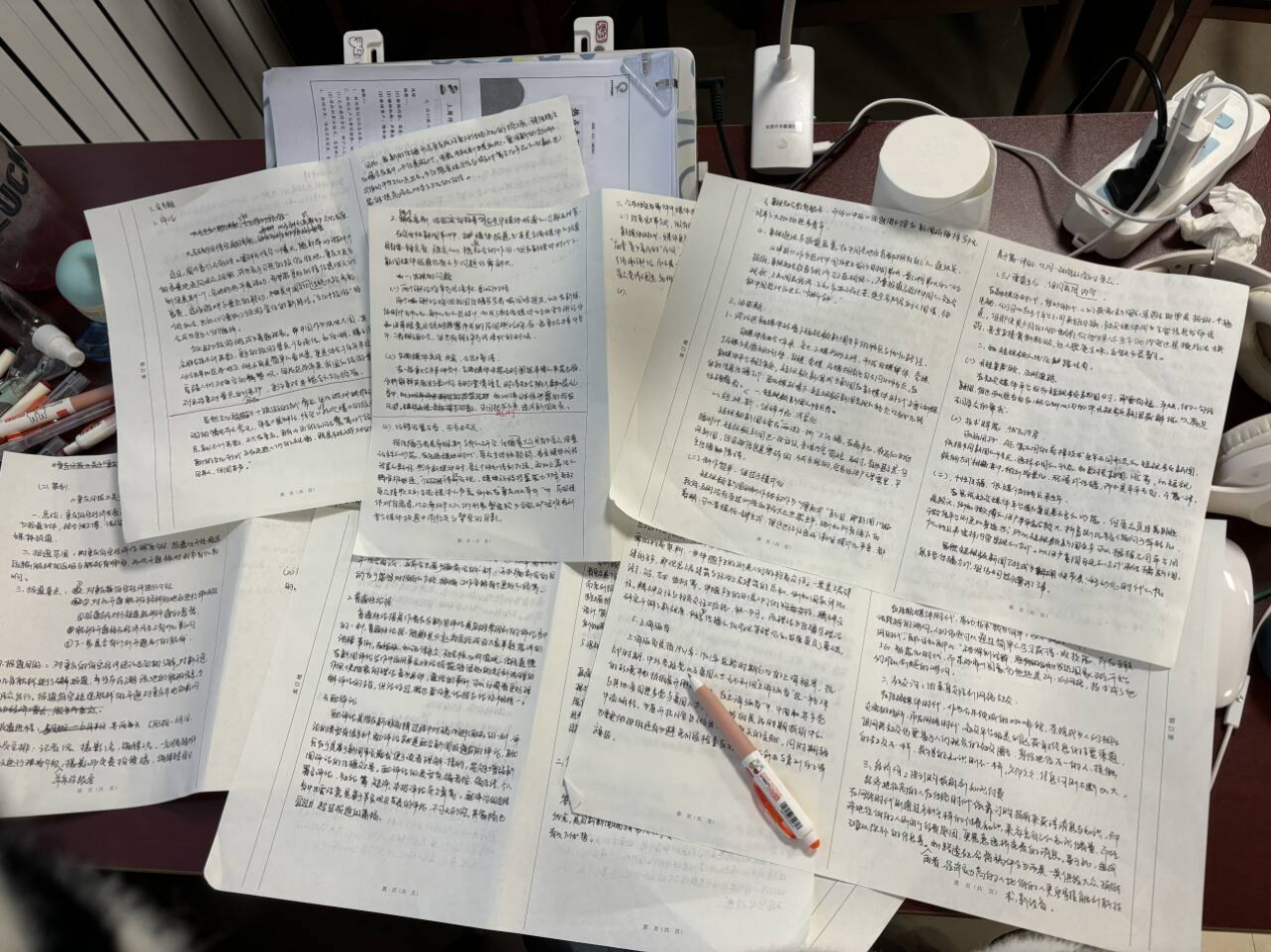 “不积跬步,无以至千里;不积小流,无以成江海。”政治在考研科目中也相当重要,王丽莎主要利用看网课与刷题相结合的模式。在网上购买徐涛的《核心考案》和《优题库》,坚持每天1小时的一边看课一边勾画。看完课后,对号入座找到相对应章节的题目,及时地检测和练习,以此来巩固和夯实相应的知识点。与此同时,她还购买了肖秀荣考研政治四套卷和八套卷(简称“肖四肖八”)。“在政治反押题的趋势下,基础成为我们解题的兵器。”“肖四肖八”对政治核心考点的本质做出了细致通透的讲解,王丽莎通过反反复复的刷题,将“肖四肖八”细碎化,形成了独特的“题感”。即使“肖八”没有押中考题,但是也能运用自己总结的方法把考题进行分解,完成作答。当遇到知识点混淆、记忆模糊时,王丽莎先是明确了具体是什么部分,后采取整理笔记的方式来加深自己的印象。对于她来说,《中国近现代史纲要》和《毛泽东选集》中的会议是最难记忆的。她便会选择抄写会议的时间和内容,既方便了后期的翻阅,也用自己的成果去抵抗了难记忆的知识点。