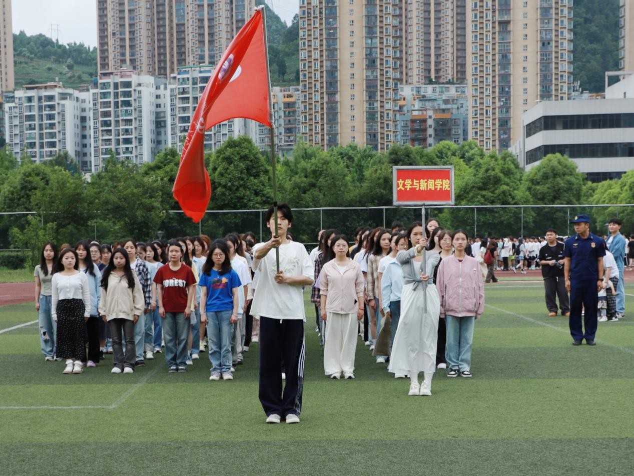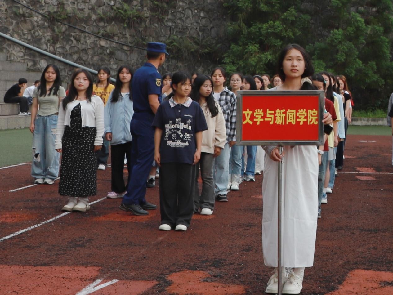 6月17日晚,文学与新闻学院在朝阳校区田径场组织开展运动会方阵训练。学院学生科(团委)负责人李娆宇,辅导员何亮、王雪雪到场,钟山消防大队消防员指导方阵训练。