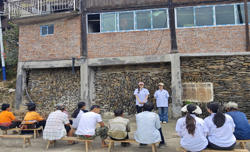 7月6日,文学与新闻学院“石榴籽”同心服务队前往黔东南州丹寨县排调镇排脚村,开展为期八天暑期“三下乡”社会实践活动。团队通过实地走访调研、政策宣讲和志愿服务相结合的方式,深入考察苗族文化传承与民族团结进步工作的实践成效。