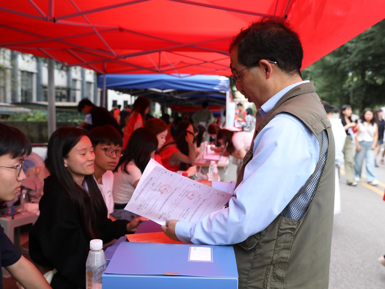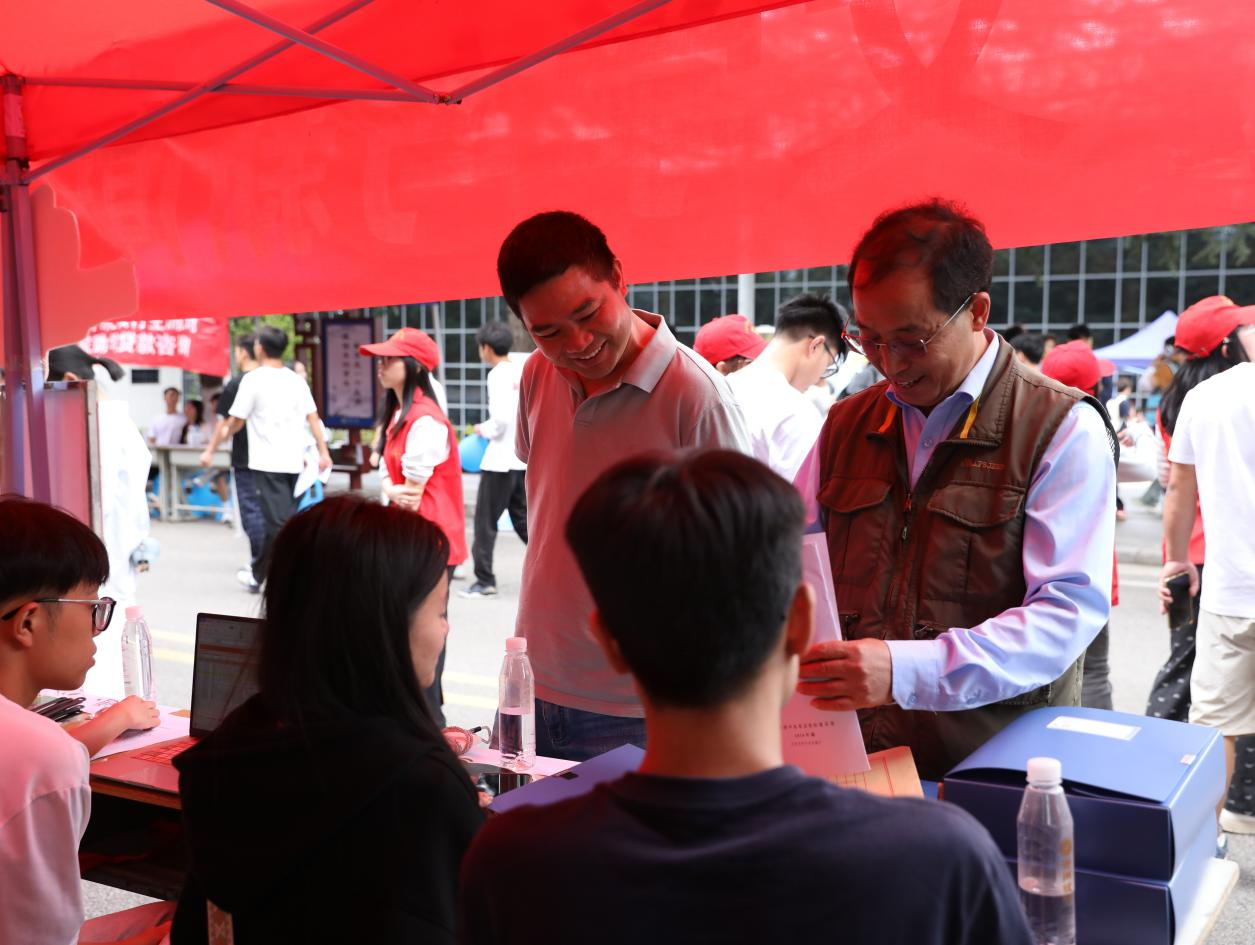 8月27日,文学与新闻学院于朝阳校区、龙山校区分别设立迎新点,开展2025年度迎新工作。学院党委书记龙尚国,院长许兴阳,党委副书记杜云,学生科(团委)负责人李娆宇,辅导员杨杰、陆邹先后来到迎新现场,对前来报道的新生表示欢迎,并热心解答新生及家长的问题。