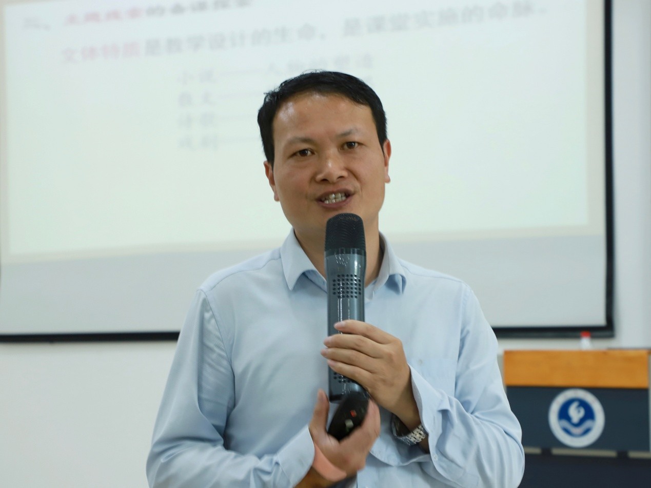 周政以“认识语文课程性质”为切入点,强调“语言运用”的重要性,语文课程需紧扣“语言运用”这一核心,引导学生发展思维能力、培育审美素养、塑造文化自信。针对当前部分语文课堂存在的“资料堆砌繁杂、教学环节冗余、呈现手段脱离文本”等问题,他表示,课堂应回归语言文字本身,教学设计需删繁就简、突出核心,同时兼顾“开端引入、过程推进、高潮突破、结局升华”的完整逻辑,让每一个教学环节都服务于学生语文能力的提升。