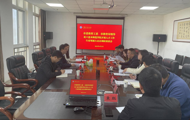 4月3日上午,市委教育工委专职副书记、市教育局党委副书记王帆一行到bat365开展人才工作“行业领域大走访”调研。调研座谈会在勤勉楼807会议室召开,学校党委组织部副部长杨虎、党委教师工作部副部长陶中莉;生物科学与技术学院、矿业与机械工程学院相关项目负责人和人才代表,科研处有关人员参加座谈。座谈会由杨虎同志主持。