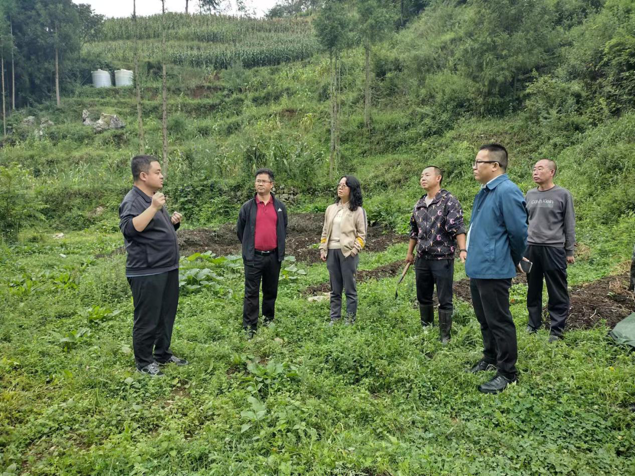 大田村驻村第一书记及驻村干部陪同调研。(供稿/周训军 编辑校对/杨虎 审核/向虎跃)